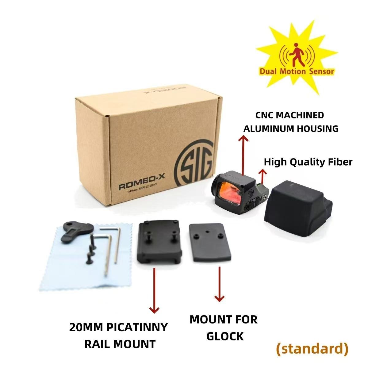 - HIGH-QUALITY OPTICAL COMPONENTS - Equipped with a Distortion-Free Aspherical Lens, the ROMEO-X COMPACT open reflex sight from SIG SAUER delivers a clear and distortion-free sight picture for enhanced accuracy; The use of quality optical components ensures optimal light transmission and clarity in various shooting conditions